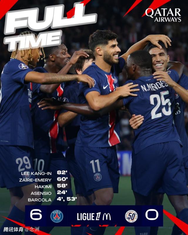 法甲第 2 巴黎主场的轮子 6-0 狂扫蒙彼利埃,取得两连胜。阿森西奥破门,巴尔科拉完成双响,阿什拉夫和埃梅里进球,内维斯和登贝莱两次助攻梅开,李刚仁连场破门。