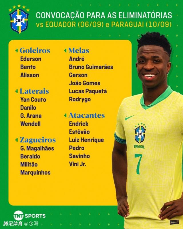 巴西公布了威尼修斯、罗德里戈和恩德里克的新世界预赛名单,17。 岁埃斯特旺也被列入名单,目前球队只是积累。 7 南美区世预赛排名第一。 六是前景依然不明朗。