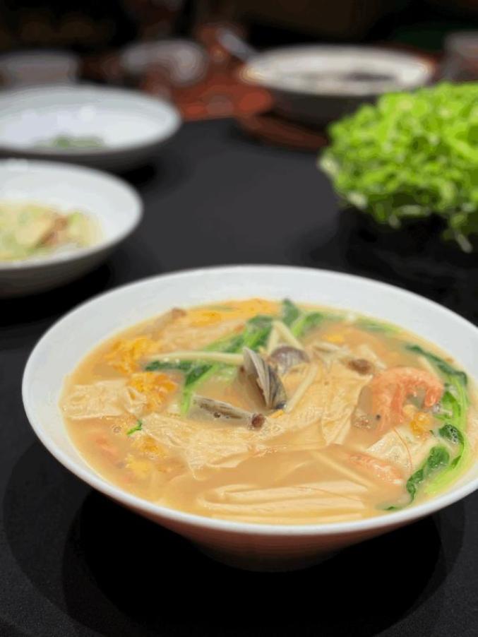 台州海鲜面是以新鲜打捞的海鲜和首选的面条为原料,经过巧妙的烹饪技巧精心加工而成。首先,我们必须保证海鲜的美味。海洋赠送的最新鲜的鱼、鲭鱼、蛤蜊、虾等鱼、虾、蟹贝,是一碗海鲜面不可替代的美味基础。手工面充分浸泡在海鲜汤中,更加滑爽有嚼劲。这碗美味的海鲜面一定会让你喝汤,看碗底。