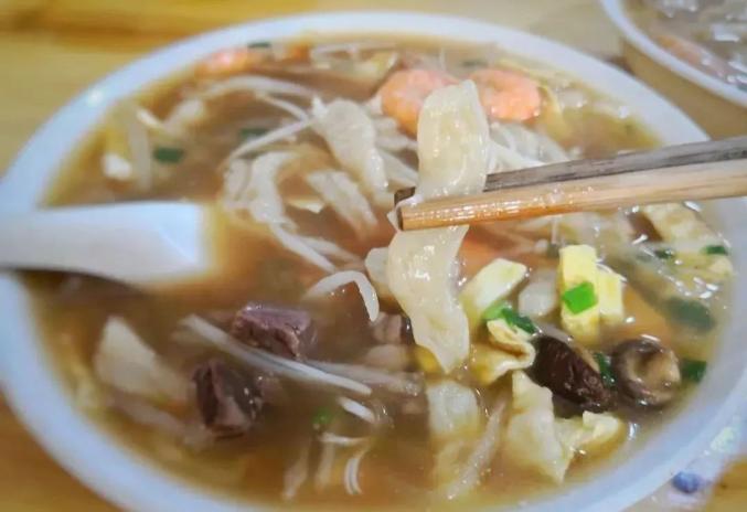 临海麦虾怎么能不提呢?将麦粉搅拌成粉浆,左手端大碗,右手拿筷子或菜刀,将粉浆一段一段切成热汤锅,一小块,像弯虾一样,浮沉滚动,很快就变成了又白又胖的面条。放在碗里,小麦虾完全融合了木耳、肉丝、蛤蜊的美味,让人流口水。