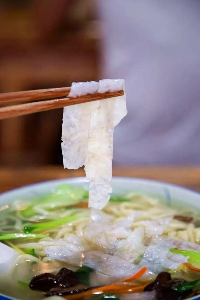 玉环的特点,顾名思义,就是碎鱼做的面条。听起来很简单,但实际上需要耐心。对于活鱼,最好是从海鲜鳗鱼中取出干净的肉,撒上薯粉,用木槌敲打,直到头发被打碎,就像一个煎饼,放在锅里烤到半熟,然后取出切丝做成鱼面。敲鱼面可以当晚餐,也可以当调料,煮汤,放一把鱼面,煮粉丝汤当浇头,都很好吃。