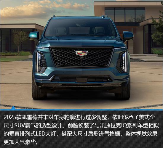 这是凯迪拉克的旗舰 SUV 车型,凯雷德一直以其雄伟的造型和高端的内饰设计而闻名,尽显美式豪华风采。为了追求市场趋势,迎合当代年轻化和智能化的发展方向,凯迪拉克最近推出了凯雷德(以下简称2025年),这是一款中期改款。 新车更换了全新的前脸设计,并引入了凯雷德) 55 “巨大”的英尺显示屏,充满了科技特色。