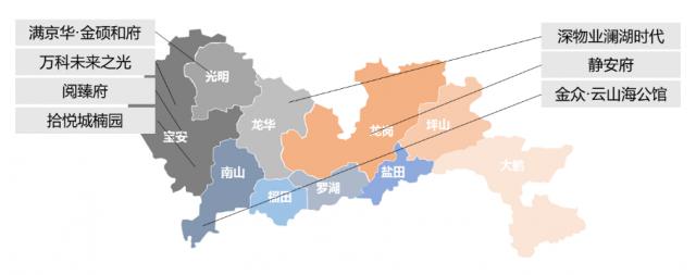 重点监测 7 个别项目开盘,共同推出 2345 套房,项目分布在南山、宝安、龙岗、龙华、光明区,其中 3 一个项目是纯新盘,4 个别项目是加推房地产。