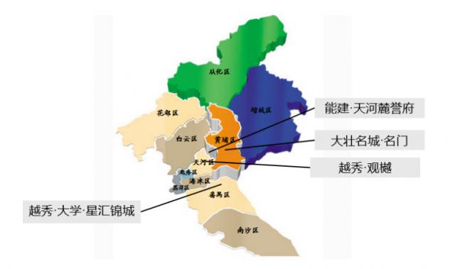 大多数客户群集中在一起 30-50 年,天河区项目买房客户主要是中心城市,黄埔、番禺项目多为地缘客户。