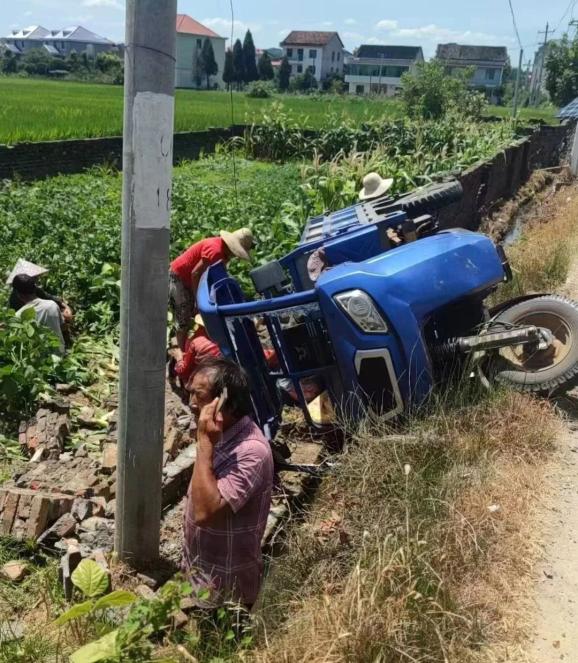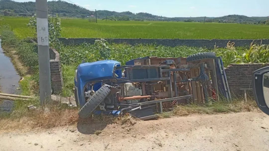 在路边的田地里,冲破护栏坠落滚动