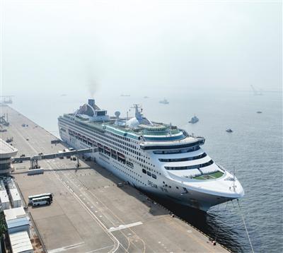 “梦想号”游轮靠泊天津国际邮轮母港。