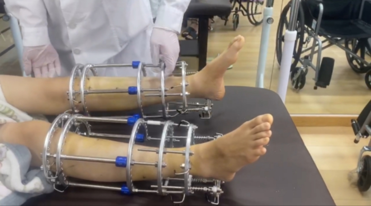 目前,医生已经修复了她的左腿。当她遇到记者时,她还戴着修复碳棒,绷带周围是碳棒,小腿上“骨折增高”手术的旧疤痕和修复的新疤痕清晰可见。虽然左腿已经修复,但仍然疼痛,没有恢复到以前的健康状态。对于右腿,医生建议在确定是否做修复手术之前观察观察。