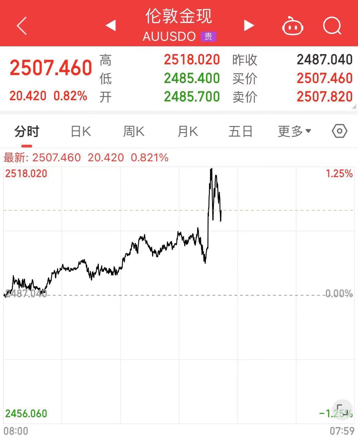 现货黄金涨幅超过1.2%,刷新日高达2515.55美元/盎司。伦敦金现在已经上涨了0.82%,直到发稿。