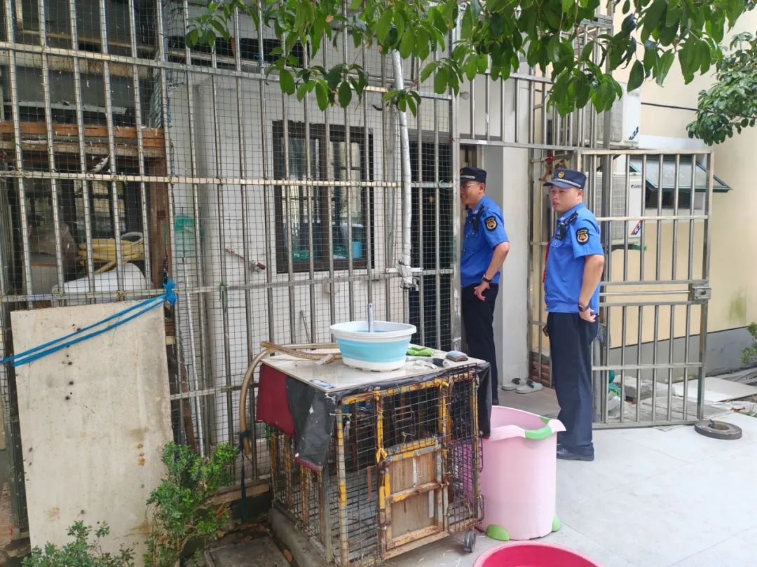 接到诉讼后,执法人员立即赶到现场。经过调查,发现X号居民楼一楼屋外建了三个鸽舍,养了十几只鸽子。