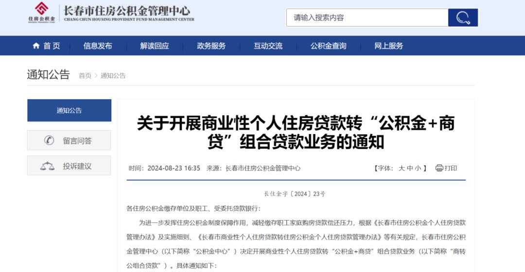 八月二十三日,长春市住房公积金管理中心发布了《关于开展商业性个人住房贷款转移》 商业贷款“组合贷款业务通知”。