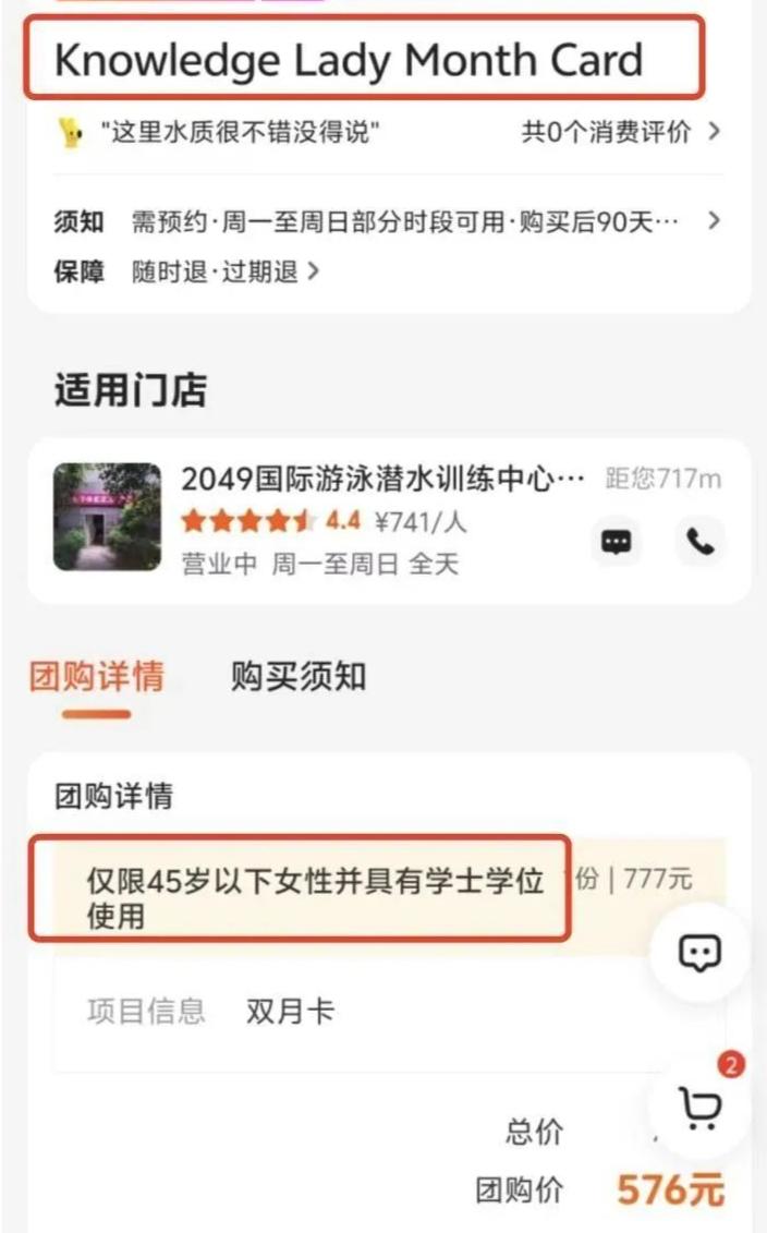 团购卡仅限“45岁以下有学位女性”?江苏一游泳池回应→