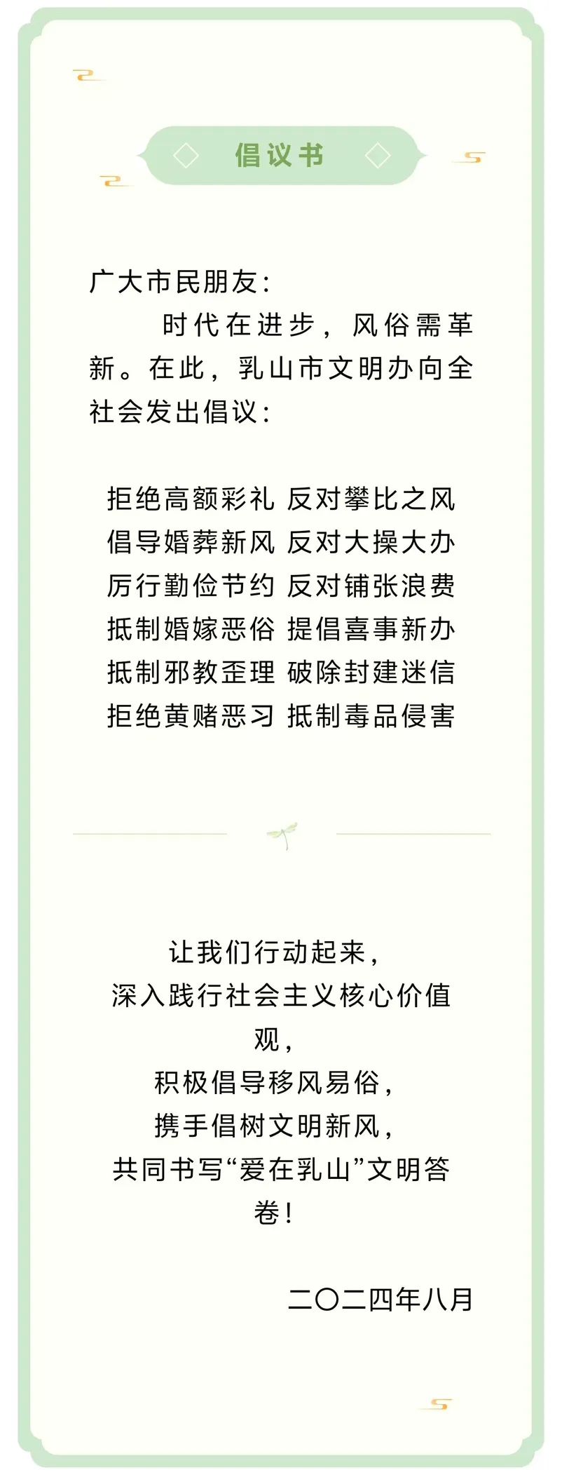 乳山市发起了“爱在乳山践文明” “移风易俗树新风”倡议,并发布海报。