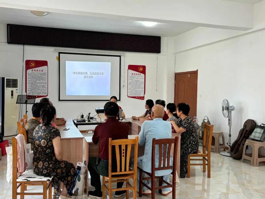 以“净化网络环境,发扬网络文明”为主题的城市街道富大社区新时代文明实践站开展宣传活动。