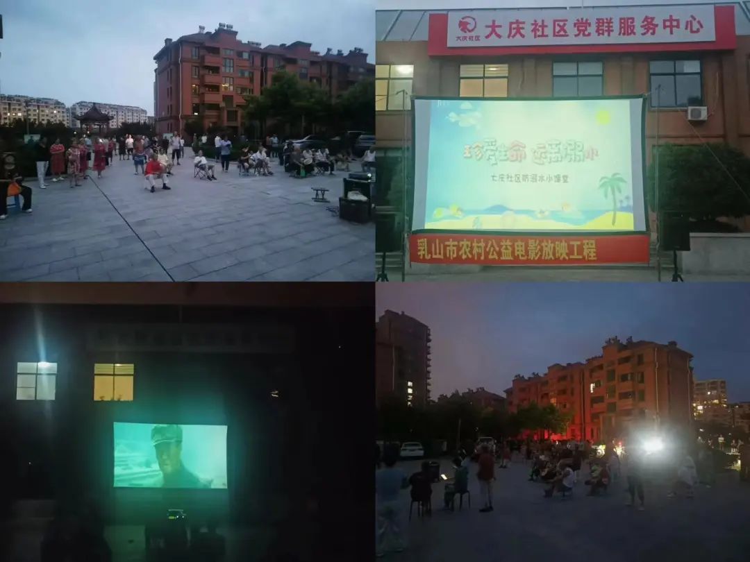 滨海新区大庆社区新时代文明实践站联合乳山电影公司在大庆社区辖区内选址,开展“公益电影进社区” 露天电影放映活动,文化惠民零距离。