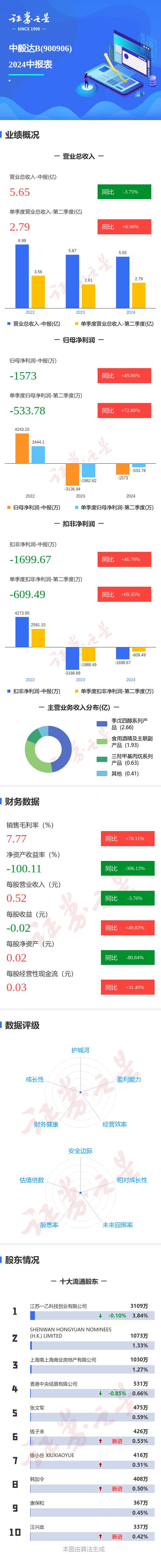 图中毅达B中报:第二季度净利润同比增长72.80%