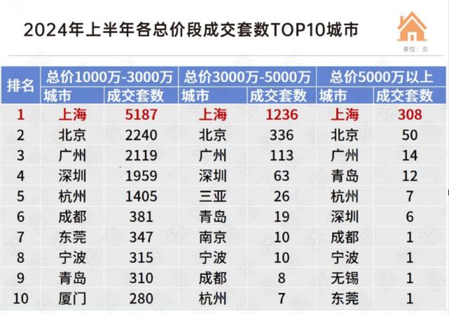 根据克而瑞的统计,上半年总价 3000 万 -5000 高端住宅项目万