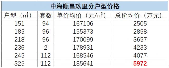 新世界中海顺昌玖里最多,数了一下,一共有 112 套房源超出 5000 万,都是 325 平户型,总价从 5210 万至 6903 万