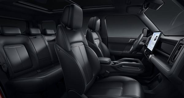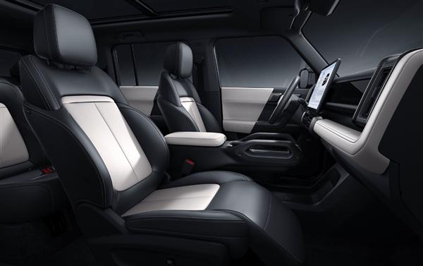 这辆车的内饰延续了这辆车。 iCar 03 规划,提供黑白和全黑两种配色方案,用料延续了自有品牌的一贯风格,多采用软质材料。