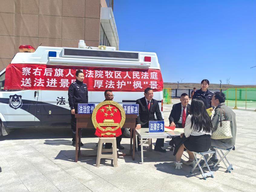 察右后旗法院延伸法治宣传职责,移位法律援助前哨,在周末或寒暑、十一黄金周等旅游旺季,在景区内设立移动法律咨询台,为游客提供高效便捷的法律咨询服务,让游客随时随地获取相关法律知识,提高法律意识和自我保护能力,感受“人在旅途,法在身边”的法律服务。