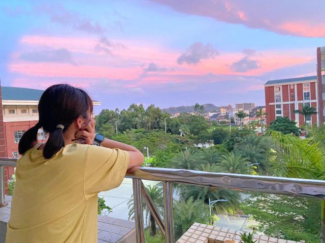 晚上上课前,我经常叫朋友在教室外的走廊里悄悄看天空,直到夕阳完全消失。后来看到很多美丽的夕阳,但都没有高中时看到的夕阳那么难忘。