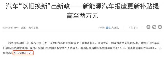 图 / 第二轮新旧置换政策部分细节 来源 / 光明日报 截图新能源观