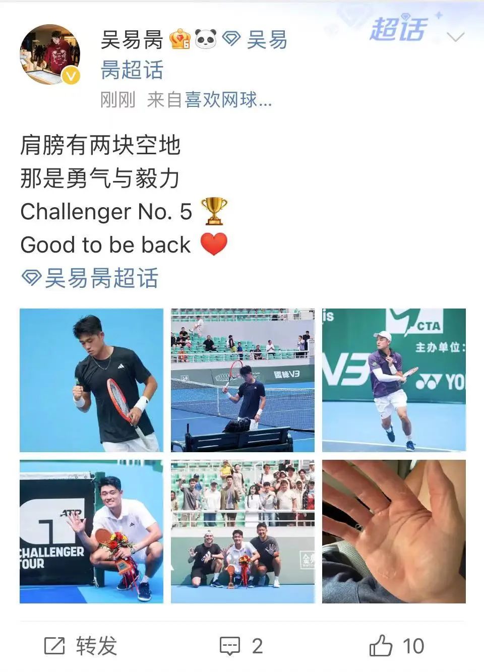 然而,吴一直在积极备战。不久前,他还通过个人社交媒体向大家询问了开球中存在的问题。9月,吴一安还将参加杭州ATP250联赛,并将再次站在赛场上,希望吴一安能重新起航。