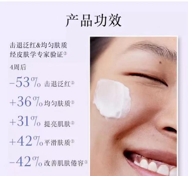 经皮肤科医师验证,使用 4 一周,能有效改善皮肤发红,肤色均匀,皮肤光滑。