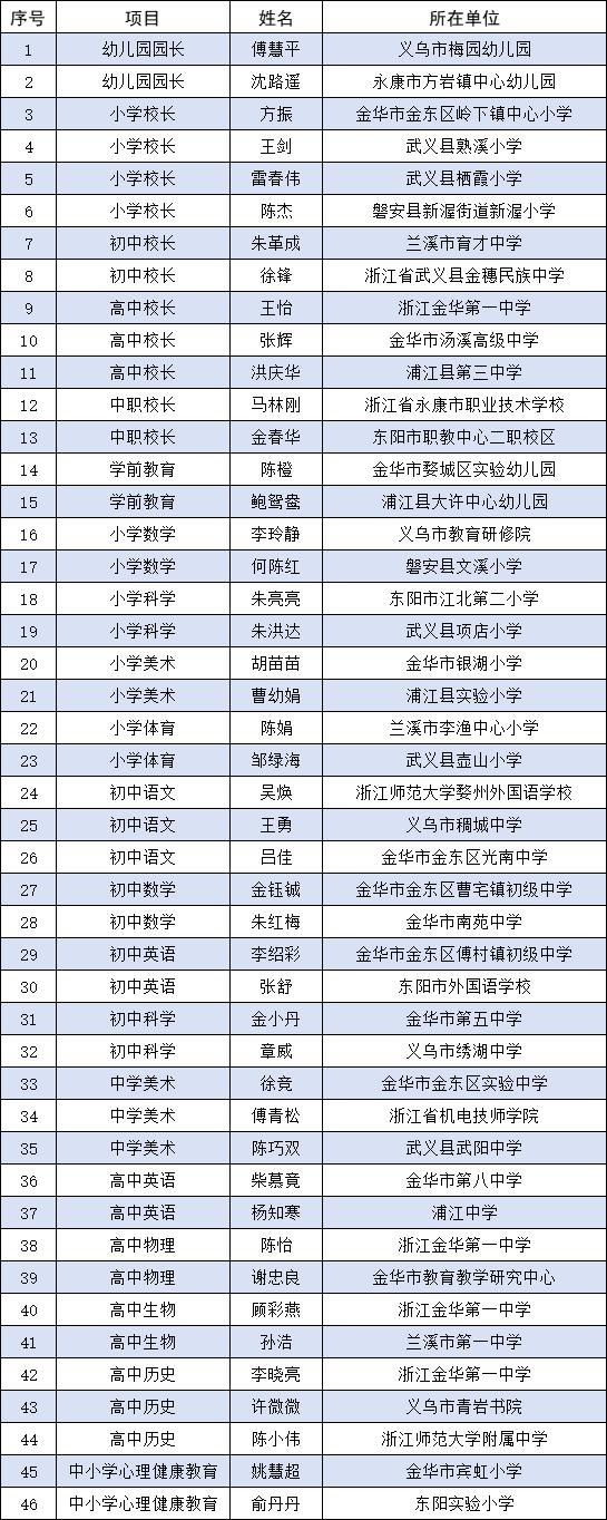 金华46人 2024年浙派名师名校长发展对象名单出炉