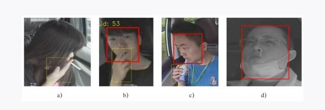 吸烟动作识别:在这里,算法团队需要用于检测吸烟识别场景。产品经理需要做的事情需要定义吸烟正面样本、重点负面样本和自然驾驶的数据,如吸烟正面样本的常见吸烟形式,并尽可能列出(嘴里叼着烟,左右手拿着烟等。);主要负样品(吃棒棒糖、牙签剔牙、用吸管喝牛奶等);自然驾驶数据(自然驾驶过程中的状态),定义越细越全面,数据采集越准确,算法训练效果越好,例如: