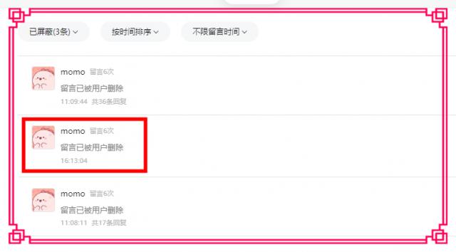 以后,momo 所有辱骂自己的评论都被骂了。下午 4 点 13 分,momo 主动删除自己的评论,导致所有评论和回复(楼中楼)消失。