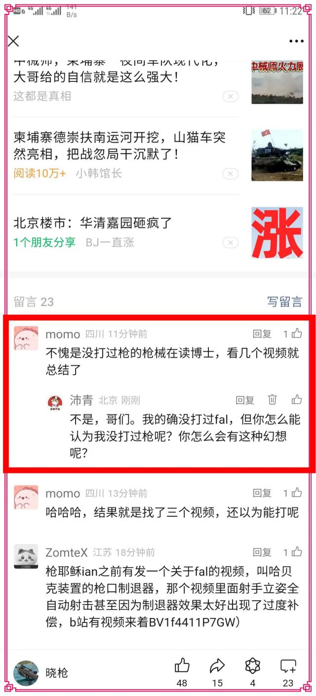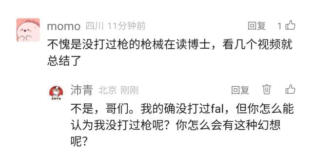 昨天,晓枪发布了《FAL 也许立姿完全自动,但是 FAL 文章《立姿全自动不太可能》,在文章中,老王(文章作者)发送 3 个 FAL 步枪射击视频,指出 FAL 枪击后座力还是比较大的。之后,大概就是了 11 点多,读者 momo(新建身份,相当于匿名)留言说:“不愧是没打过枪的枪在读博士,看几个视频就总结出来。"