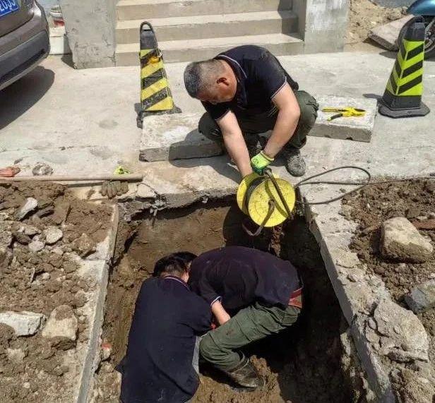 黄长彦带领西部管理所工作人员维修组。 3 员工当天下午在单元门口开挖道路,找到漏水点后迅速修复,立即恢复供水。第二天,在烈日下,修理工恢复了开挖道路,方便居民日常出行。