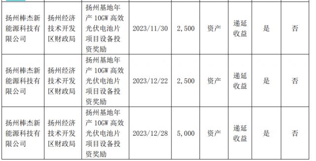 此外值得注意的是,瑞财经发现,仅仅一年,扬州棒杰就通过了。 "扬州基地年产 10GW 获得了高效光伏电池项目 1 1亿元政府补贴。但即使有如此巨大的后盾,它仍然陷入无力偿还债务的境地。