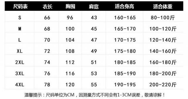 尺寸跨度也很大,从 S 码到 4XL 码都有