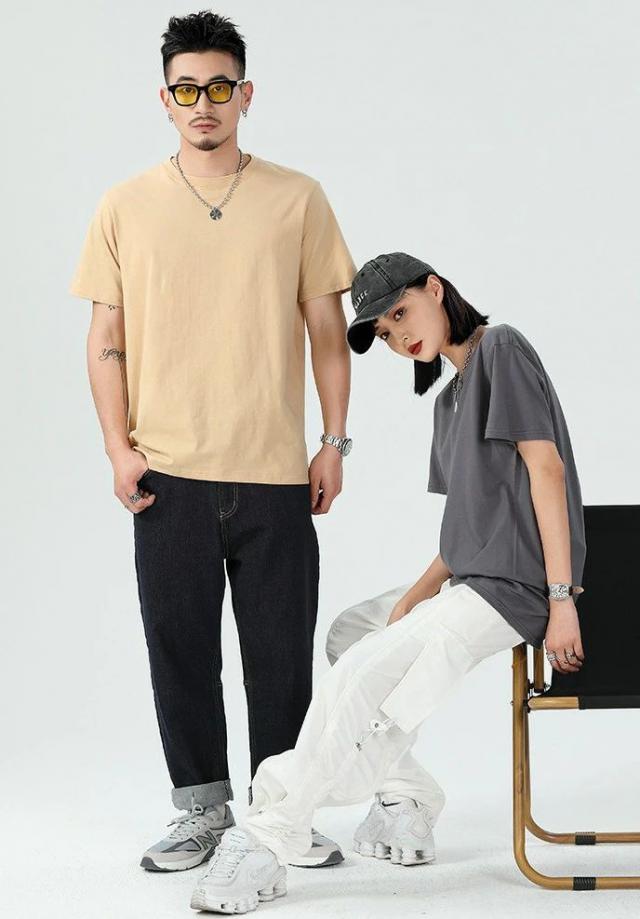 男女同款的潮牌单色精梳棉 T 恤