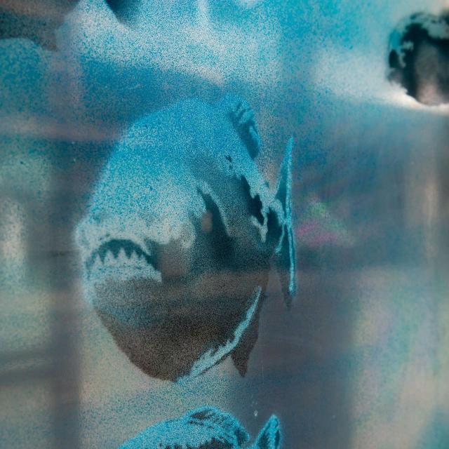 周日继续更新。在伦敦市警察局的一个岗哨盒子里,出现了一群美食美人鱼,吸引了警方对这起“故意破坏事件”进行现场调查。与之前的剪影不同,这次是玻璃上的透明喷涂,这也让整个岗哨盒看起来像一个水族馆。