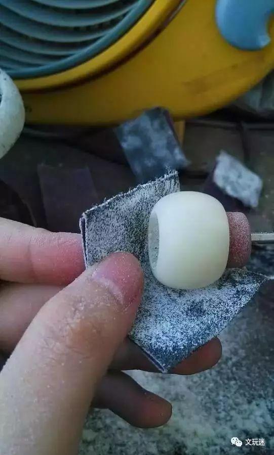 首先,我们不急着打孔。首先,我们将菩提根整体去皮。在这里,我想提醒大家,在选择材料时,不要选择畸形种子材料或有明显横纹的种子材料。可以先用剪刀刮去表面第一层柔软的皮肤,也可以直接用台磨机的磨盘或砂轮去皮。这个时候,如果家里有照玉的手电筒,可以用来检查菩提根是否有裂纹和絮状物,表面是否有阴皮和昆虫痕迹。