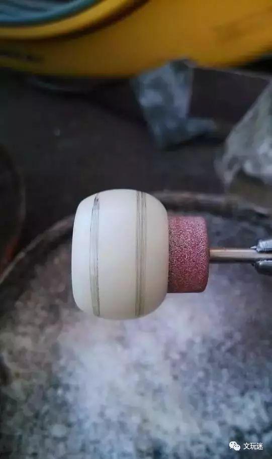 以后我们要把菩提根做成桶珠的形状,也就是把一部分从头到尾去掉。这一步有两种可行的方法:第一种方法是直接用磨盘打磨。第二种方法是将菩提根固定在台磨机的轴上,用铅笔标记需要切割的位置。 开始旋转,手锯按标记贴在菩提根上。切记不要把它切得很薄,要给桃心留下足够的财富,还要把消耗计算在内。