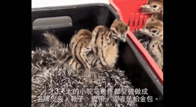 第一批是刚出生的 3 天空,乳臭未干的小鸵鸟。它们将被制成小物件,如皮带、钱夹、靴子等。