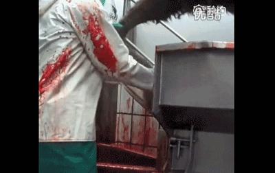 鸵鸟被吊起来,还有一点想法,他们只能痛苦地挣扎,模糊地看着血从喉咙里涌出,直到死去。