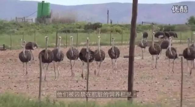 在狭窄的护栏中,另一批被饲养到 1 一岁以后,再进行屠宰。根据野生鸵鸟 40 就年龄而言,他们也不过是个婴儿,本该和父母一起在草原上奔跑,自由成长。
