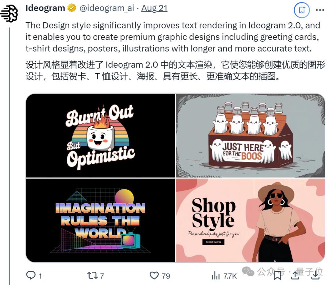 8月21日,2.0版Ideogram正式推出,声称文字渲染能力强。