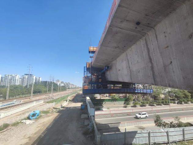 中铁二十局集团有限公司包银高铁工程项目经理部三工区总工程师张孟然表示:“目前,跨海达西街连续梁154号墩和157号墩已完成跨现浇段施工,6号墩正在155号墩施工,7号墩正在156号墩施工。根据施工计划,跨海达西街连续梁预计10月初将实现合龙。”