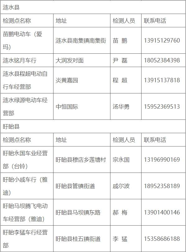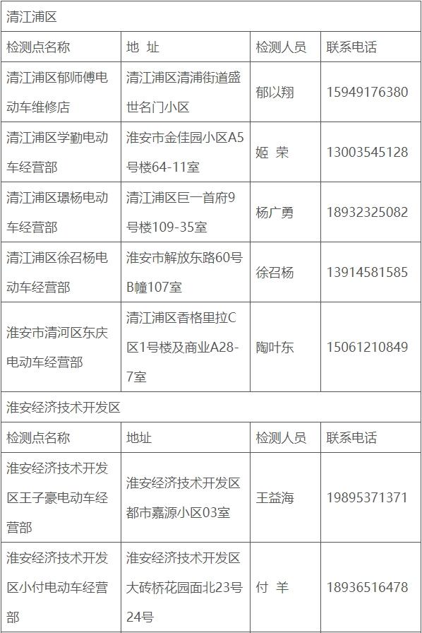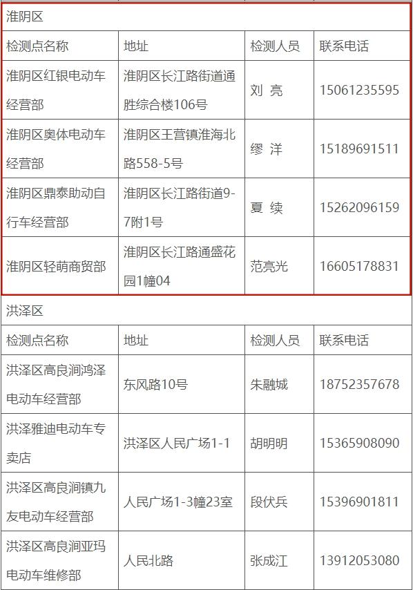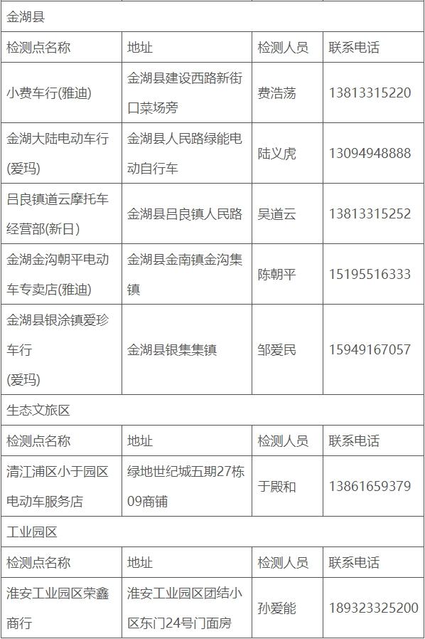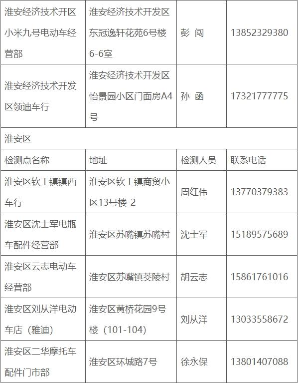 淮安市电动自行车免费安全检测服务点名单(第一批)发布通知