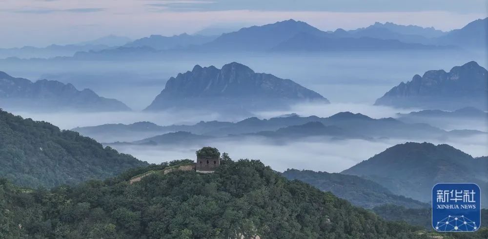 ● 霞光云海映长城。日前,河北省遵化市北部山区云蒸霞蔚,朝霞、云海映衬古长城,壮观壮观。
