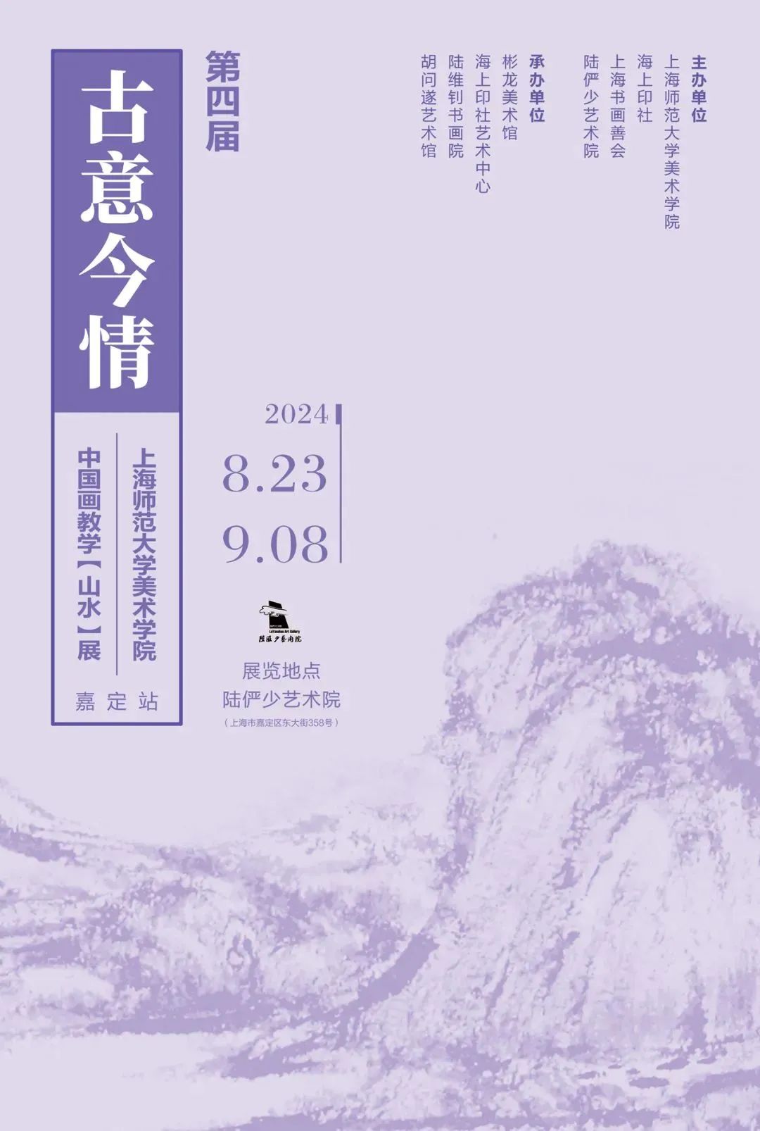 8月23日,第四届“古今今情——上海师范大学美术学院中国画教学(山水)展”嘉定站在陆树少艺术学院举办,共呈现精美山水画59幅。和小嘉一起看看吧~