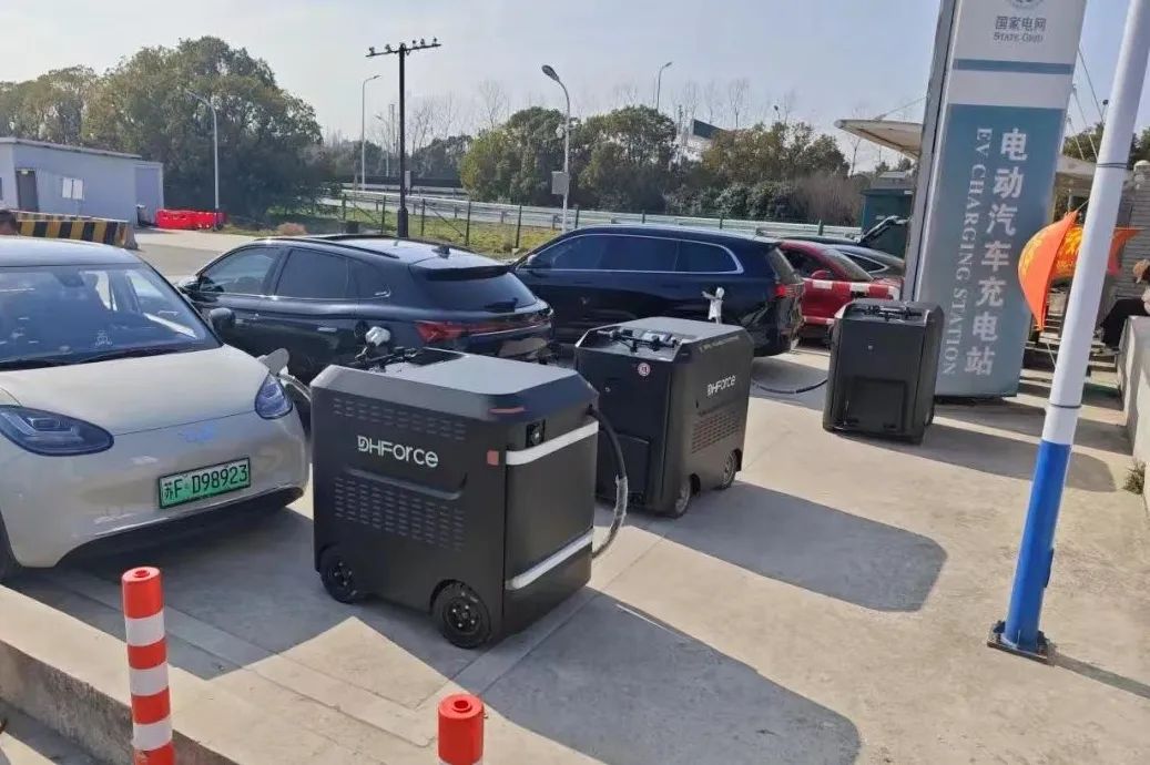 今年春运高峰期间,这5个移动充电机器人被投入到G40长兴岛高速服务区,为新能源车主提供随时随地充电的快充体验。
