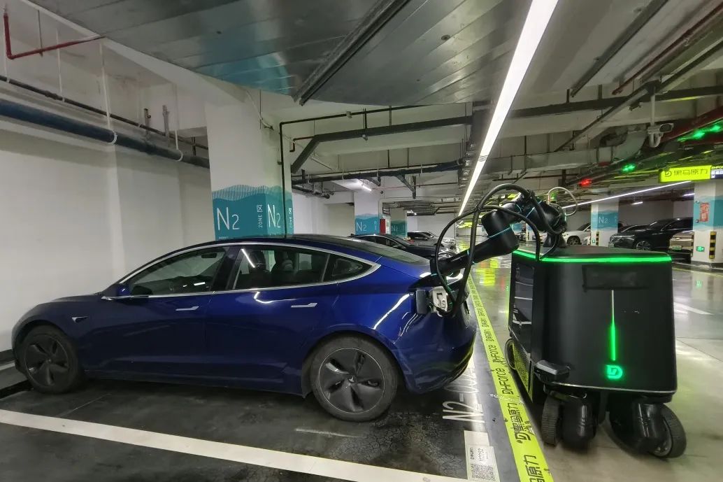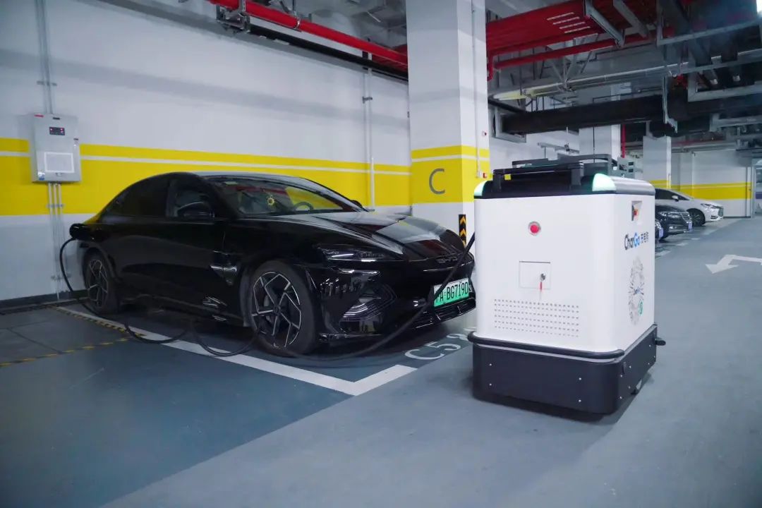 此时,一只身材小巧、表面可爱的智能移动充电机器人CharGo充电狗正在B1停车场穿梭,为新能源汽车“充电补能”。