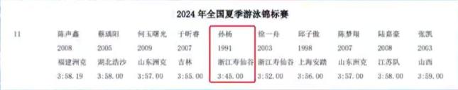 记者从最新的秩序册中看到,孙杨的报名分数为3分45秒。