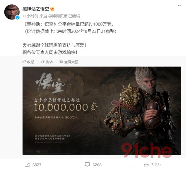 这些热搜都是国产的《黑神话:悟空》 3A 游戏带来的,开始销售 3 天空销售突破千万,成为迄今为止最快的销售额。 1000 一万个游戏,超越了著名的《艾尔登法环》。